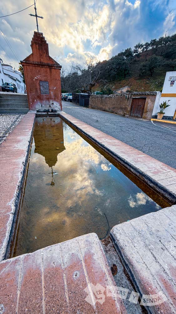 A las puertas del pueblo nos espera por un lado la “Fuente del Pilar”. Una placa nos informa que fue reconstruida desde su nacimiento en el año 1934. Está hecha a base de ladrillos y dispone de una gran pila de agua que bien podría servir de abrevadero para el ganado.