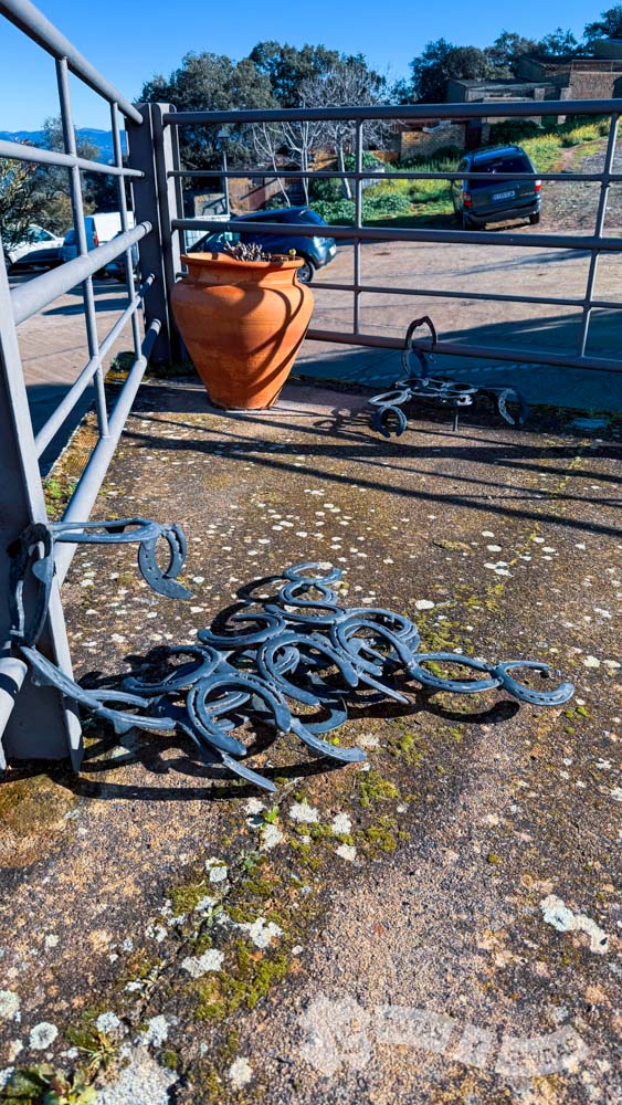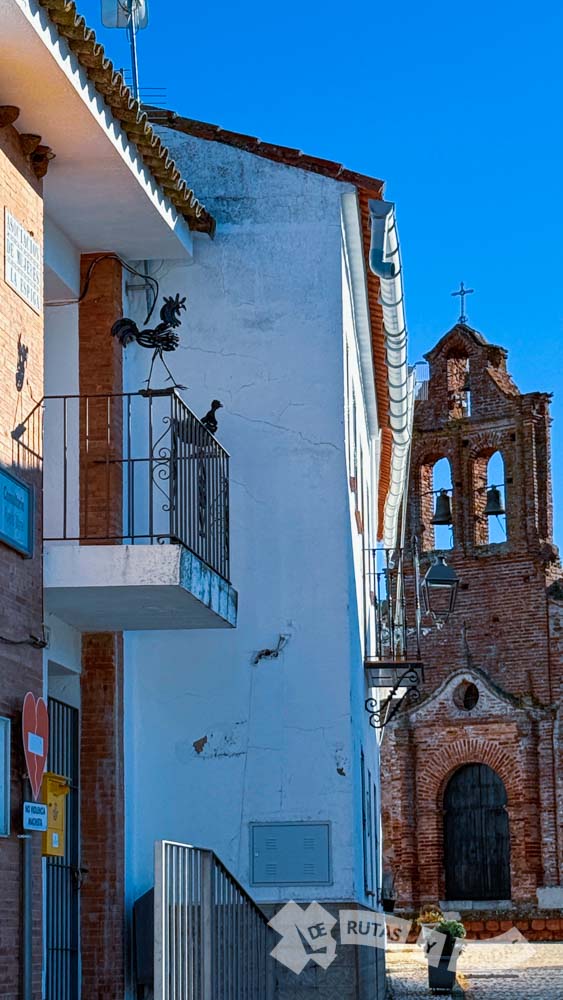 Frente a esta plaza, en esta misma calle, encontramos el consultorio médico. Es su balconada advertimos curiosas esculturas realizadas con herraduras. Son obras creadas por el artista Perico Canterla, y no serán las únicas que veremos a lo largo de la visita al pueblo.