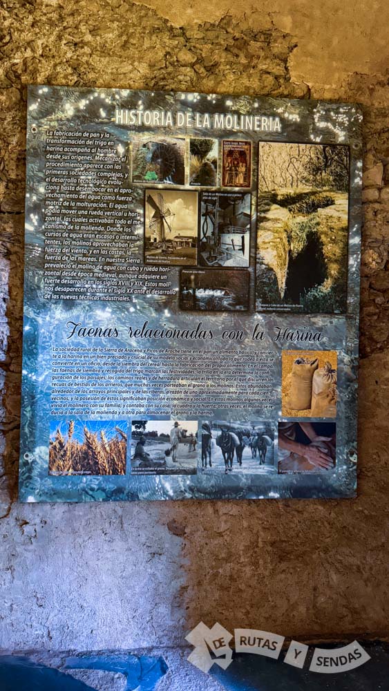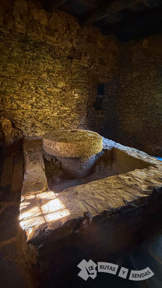En este de aquí, el de “Tolete” se ha llegado a recrear fielmente el mecanismo de la molienda tradicional. El agua bajaba del cubo para hacer funcionar el rodezno hidráulico que hacía mover las piedras volandera y solera que molían el grano.