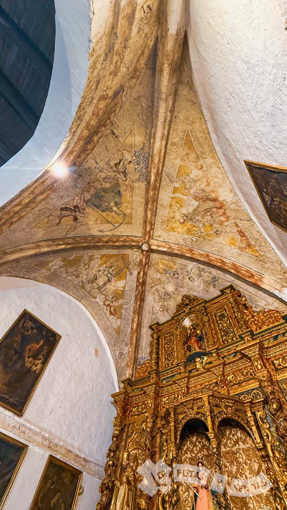Este último elemento se encuentra adornado con pinturas locales realizadas por artistas locales. Entre la iconografía que se exhibe destacamos la figura de Dios Padre escoltado por ángeles y las Virtudes Teologales de la Esperanza, la Fe y La Caridad.