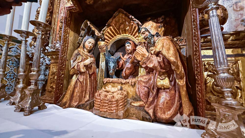 Lo más valioso de este retablo es la escena del Nacimiento de Jesús donde adivinamos las figuras de la Virgen, San José, el Niño, la Mula, el Buey y un pastor.