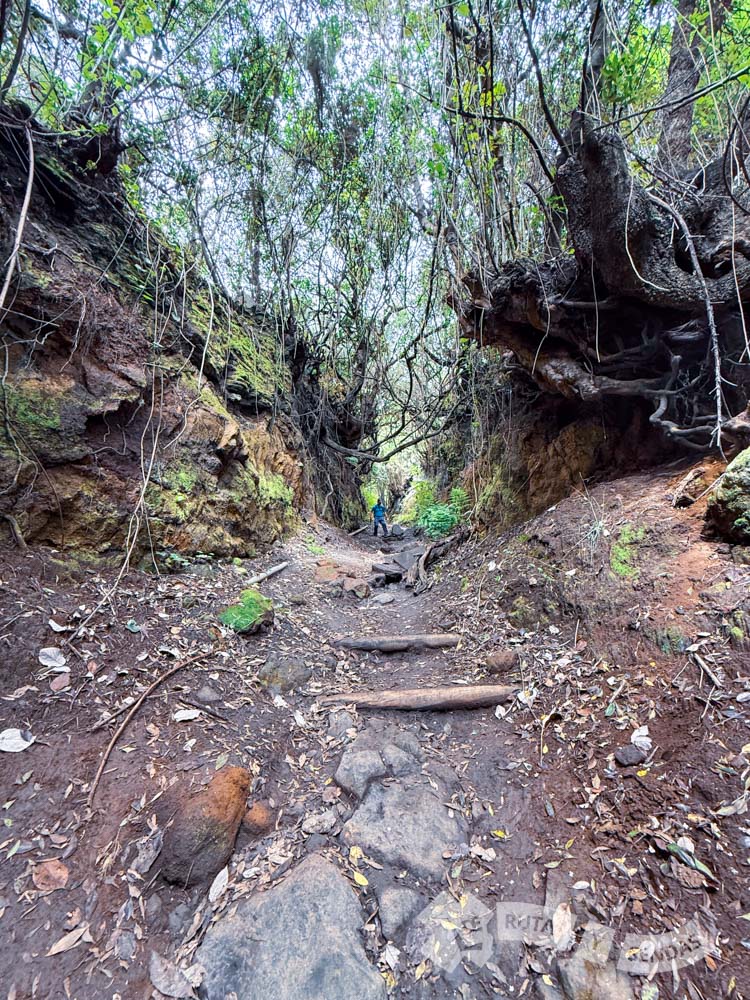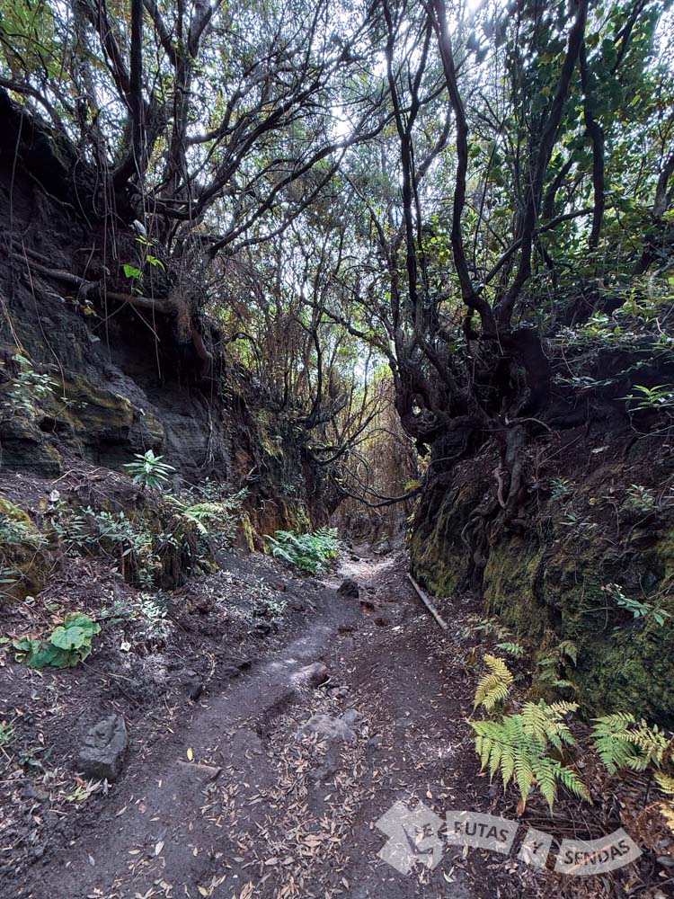 Hay que prestar atención al firme empedrado para evitar traspiés o posibles deslizamientos, en caso de encontrarse húmedo. El bosque de laurisilva regresará para envolvernos en ciertos tramos. En alguno de ellos parecerá que se nos traga la tierra.