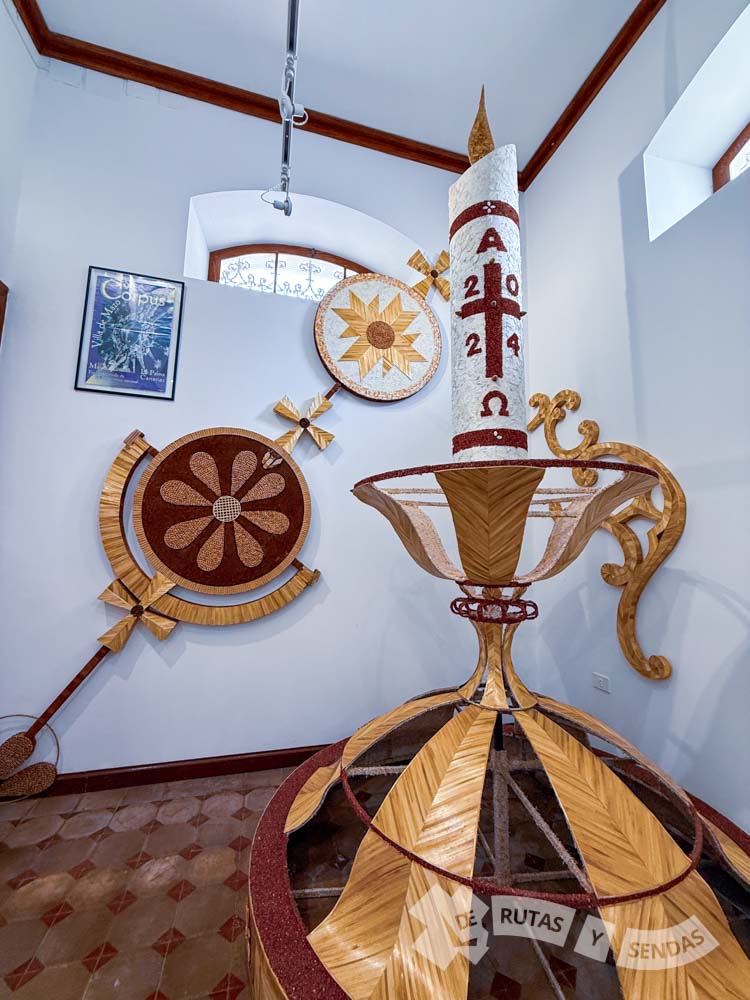 En esta planta baja de la Casa Roja dedicada a divulgar el Corpus Christi también podemos disfrutar de antiguos diseños de arcos, alfombras y pasillos, documentos, ilustraciones y fotografías de la festividad. Un evento que está profundamente arraigado en el municipio.