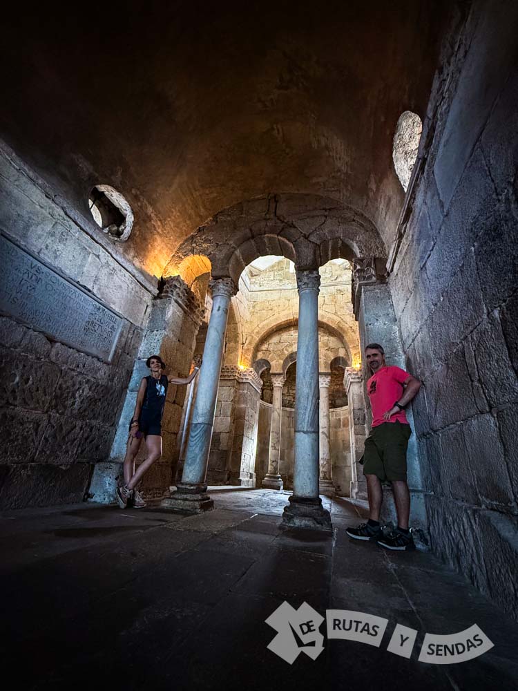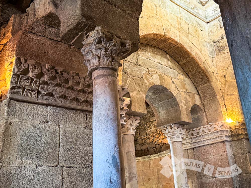 Fue el propio San Fructuoso, Obispo de Braga del siglo VII quien mandó a construir este templo para que le sirviera como sepulcro. Desde el interior podemos observar bien cómo se divide el espacio donde cada brazo accede al cuerpo central por medio de arcos de herradura apoyados en columnas con capiteles corintios visigóticos.