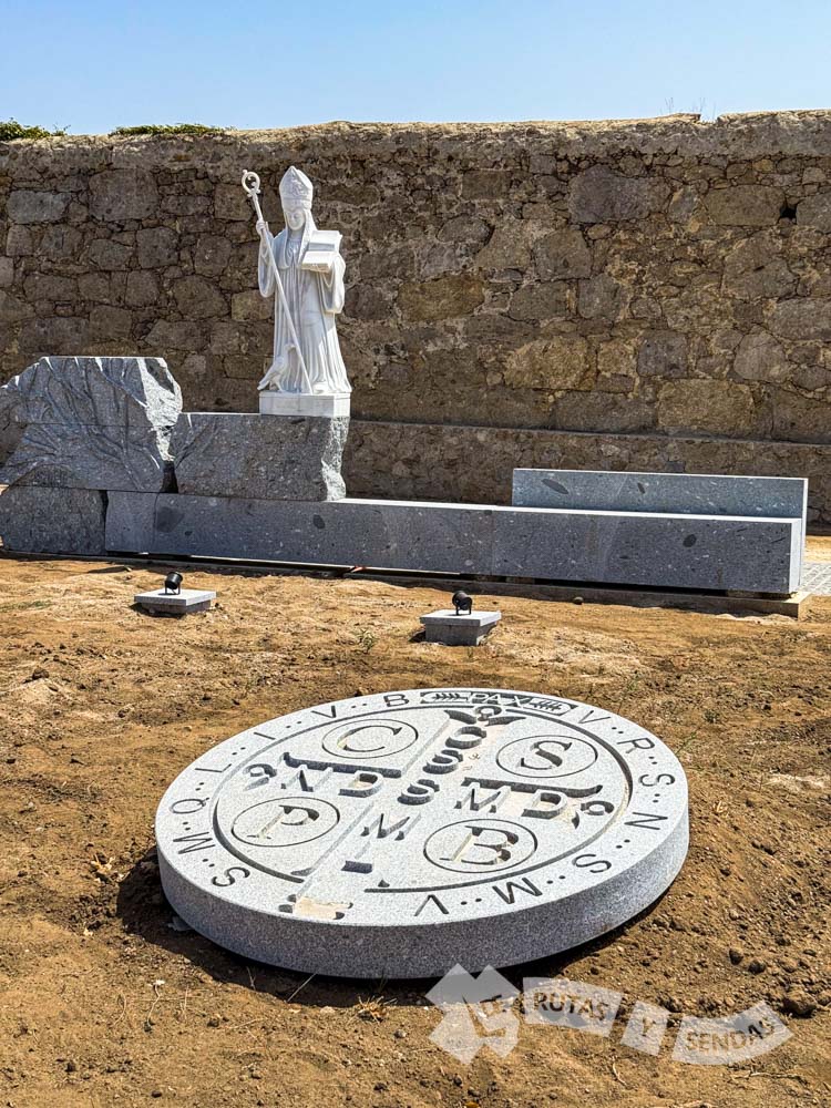 La torre y el león con báculo que exhibe la obra también se manifiestan en el escudo de la fachada principal del Monasterio. Son elementos heráldicos que identifican a la institución de la Abadía de Rendufe.